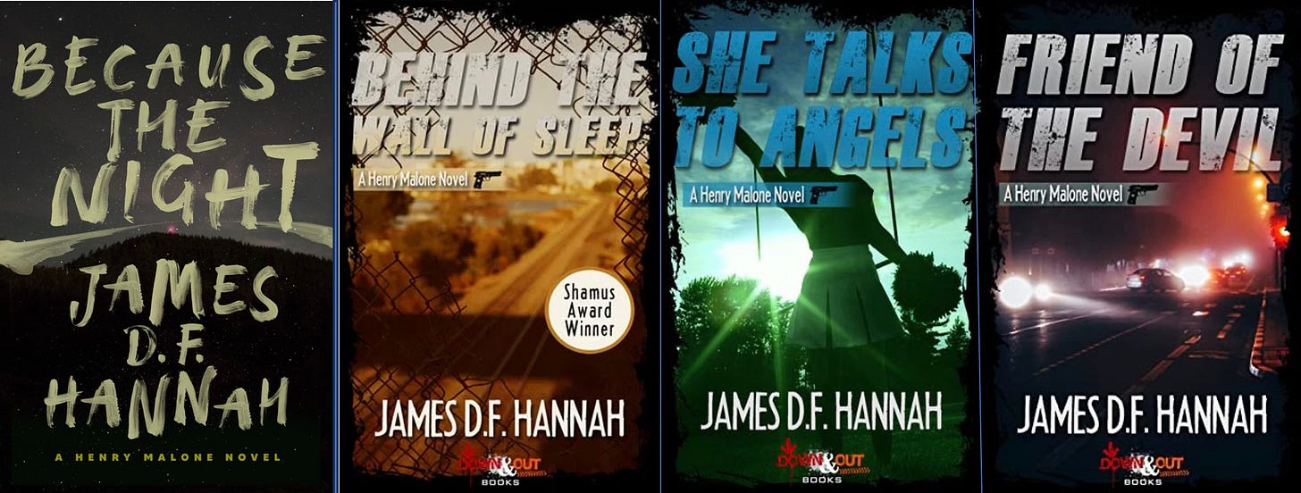 I started reading James D.F. Hannah’s books in reverse order. I read Because the Night (2023), the sixth Henry Malone novel, before all the others. This happens to me frequently. I’ll enjoy a book, be curious about the author, discover there’s a series, then hurry to catch up on what I’ve been missing.